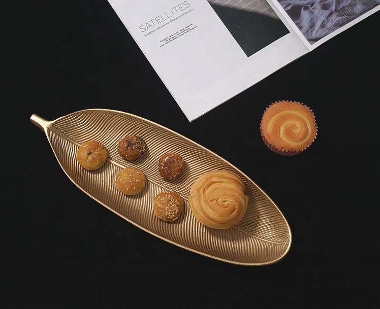 Unique Wooden Plate – Leaf Shape Gold
