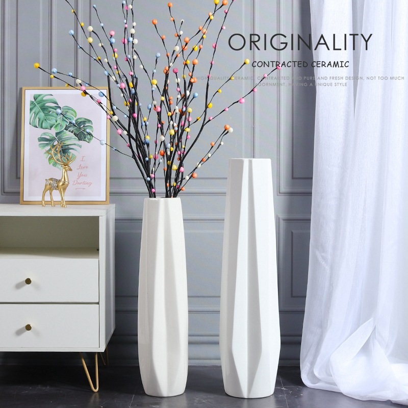 Elegant 60cm ceramic vase with a unique pentagonal shape, crafted from high-quality materials for a modern, sophisticated look.